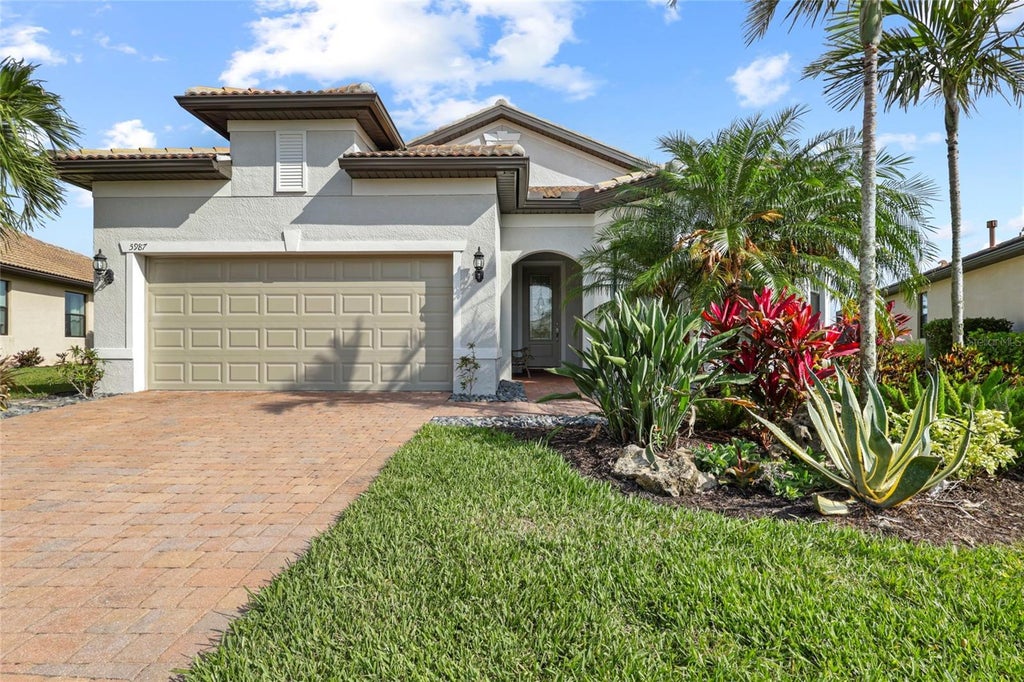 One or more photo(s) has been virtually staged. Prime lake-front lot with preserve views. This impeccably maintained home offers the feel of brand-new construction with many upgrades, including 8' doors, French doors, tray ceilings, 6'' baseboards, crown molding throughout, an extra-large steam shower with Bluetooth connectivity, a Storm Smart system, an RO water filtration system in the kitchen, built-in shelving in the pantry and walk-in closets, large windows with Hunter Douglas blinds in the living room, plantation shutters in the bedrooms, hardwood flooring in all bedrooms, pavers, and violet light vents in the bathrooms.